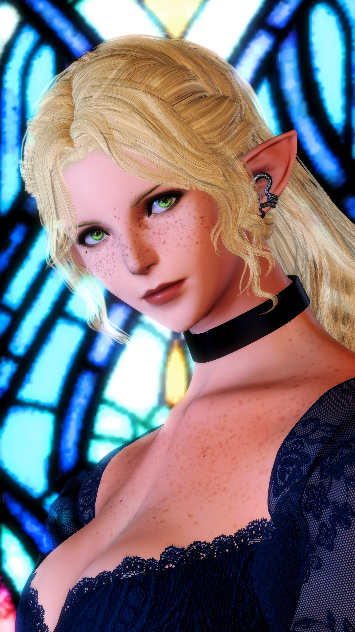 a bit turbulent, with bouts of depression and loneliness, and unresolved trauma. she attempts to hide her issues behind a stoic, seemingly-competent mask. HEIGHT 6’5” HAIR blonde EYES emerald green MARKS & SCARS freckles over cheeks & nose, and dotted all over body. a few scars, notably a few claw marks on her back (left side), and a faded bite mark over her left shoulder. PHYSICAL DESCRIPTION a tall, striking elezen woman with an athletic build. she bears the lean muscle of a trained fighter and climber with visible abs and particularly built back, shoulder, arm, and thigh muscles, and often bears the poised posture of a noblewoman. VOICE CLAIM camilla luddington (as lara croft) PARENTS